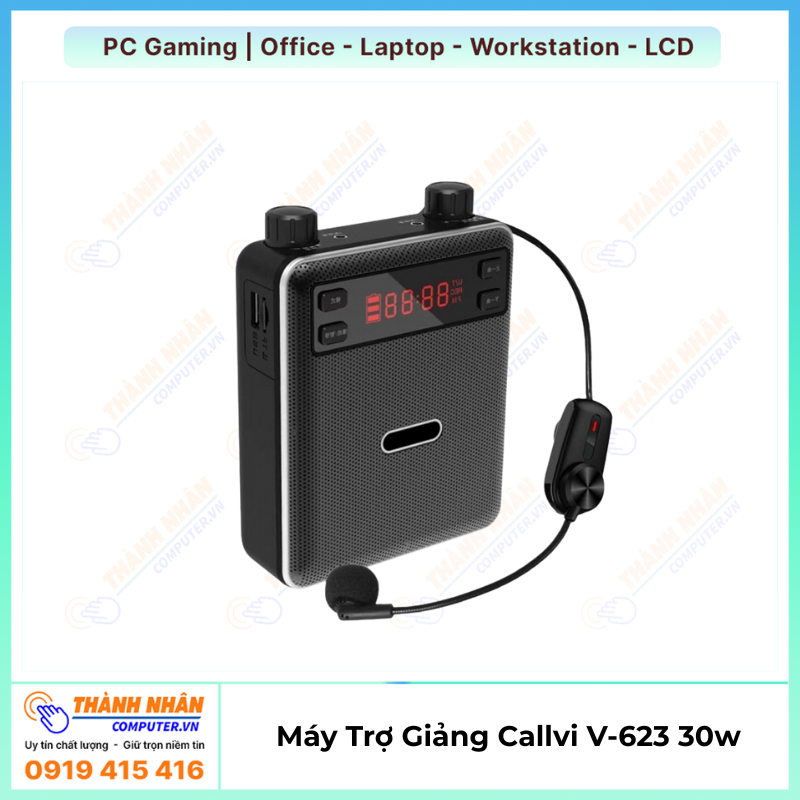 Mã sp: Callvi 623 (UHF). Có chức năng ECHO. Có màn hình hiển thị. Bao gồm Micro không dây, khoảng cách thu phát 30m-40m, thời gian sử dụng lên đến 30 giờ, Có Bluetooth kết nối điện thoại hoặc máy tính để phát nhạc, chơi nhạc qua Thẻ TF, hỗ trợ nghe đài FM, hỗ trợ ghi âm. Định mức: 20W Max 35W