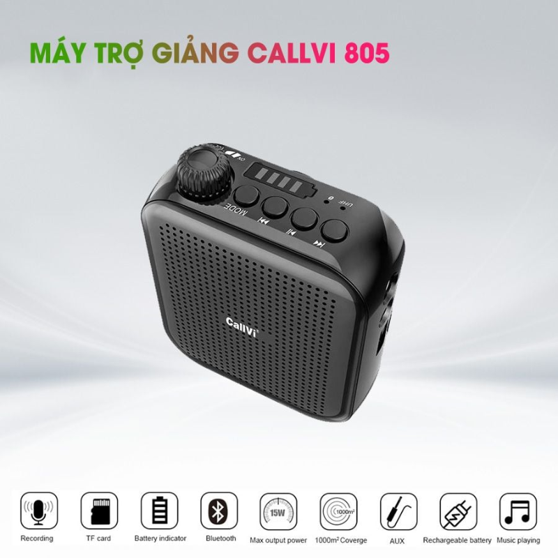 Ngoài việc hỗ trợ khuếch đại âm thanh trở nên to rõ thì Callvi V805 được trang bị kết nối bluetooth, tích hợp USB, thẻ nhớ (lưu file MP3 và dung lượng tối đa 32G), để phát những file âm thanh giúp cho việc giảng dạy hiệu quả hơn cũng như bạn có thể dùng để nghe nhạc sau giờ giảng dạy.