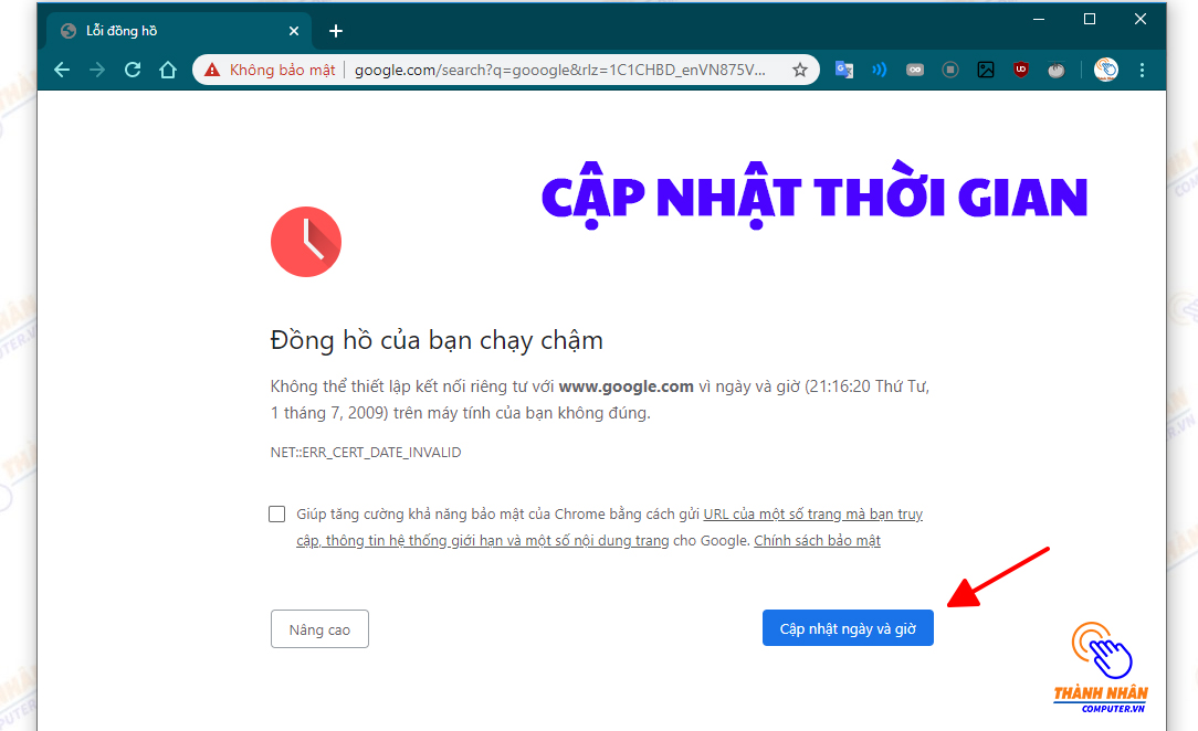 Việc sai lệch ngày giờ hệ thống là một trong những nguyên nhân chính khiến bạn không thể truy cập vào internet bằng trình duyệt web mặc dù biểu tượng mạng thì vẫn sáng quắc. Còn nếu như bạn đang sử dụng Google Chrome thì sẽ bị lỗi giao thức SSL, có nghĩa là chữ không bảo mật màu đỏ, cảnh báo nguy hiểm và tất nhiên là bạn sẽ không thể truy cập vào được bất cứ trang web nào rồi.